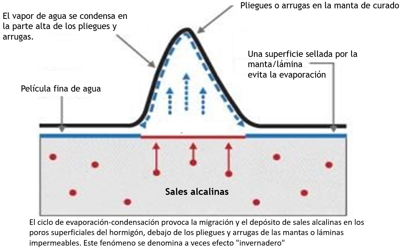 -Existen curadores ineficaces que incluso procuran tasas de evaporaciones tempranas más altas que si la superficie no tuviera filmógeno curador o sistema de curado alguno, ello es debido a la modificación que realizan de manera directa en la estructura capilar agrandando y ensanchando el tamaño de esta.