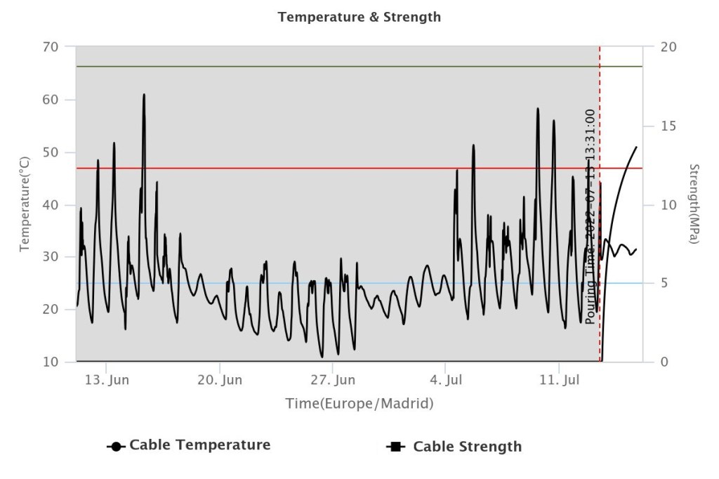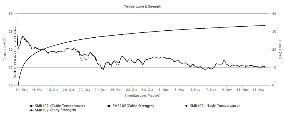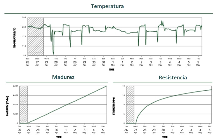 Nos permitirá monitorizar, registrar, documentar y evaluar si la tendencia de esta evolución se desvía de los parámetros objetivos haciendo peligrar el buen confinamiento del hormigón en su proceso productivo, en el de sus etapas de fraguado, así como en las de curado que alteren las propiedades finales buscadas.