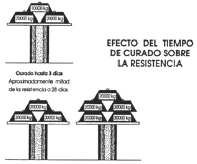 El hormigón-concreto mezclado, colocado y curado a temperaturas elevadas, normalmente desarrolla resistencias iniciales mayores que la de los hormigones producidos y curados a temperaturas normales; pero a 28 días o más, las resistencias son generalmente más bajas.