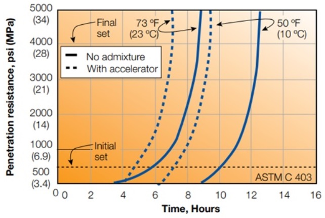 Incluso si el contratista es obligado a utilizar una relación agua/cemento preestablecida, y aún si él decide colocar el hormigón-concreto con asentamiento reducido a temperaturas elevadas, ello sería en detrimento de la resistencia del hormigón-concreto.