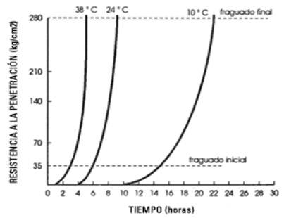 Elevadas temperaturas del agua, provocan mayores temperaturas del hormigón-concreto y a medida que ésta aumenta, también aumenta la demanda de agua y disminuye la resistencia, para hormigones-concretos de la misma consistencia.