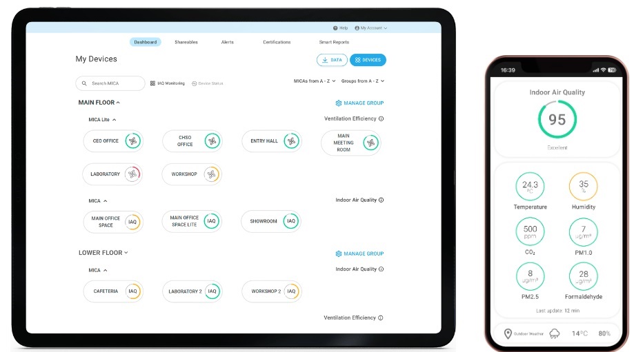 - Medición del contenido de volátiles y contaminantes varios peligrosos para la salud y el medio-ambiente como son: el monóxido y el dióxido de carbono, el ozono, formaldehidos y otros gases diversos provenientes de contaminación, actividad de maquinaria, industrial diversa, personal, pulverización de agentes de curado, etc. en el aire en PPM y COV´s para evaluar la calidad del aire , su evolución y peligrosidad para el ambiente de trabajo y el propio hormigón-concreto.